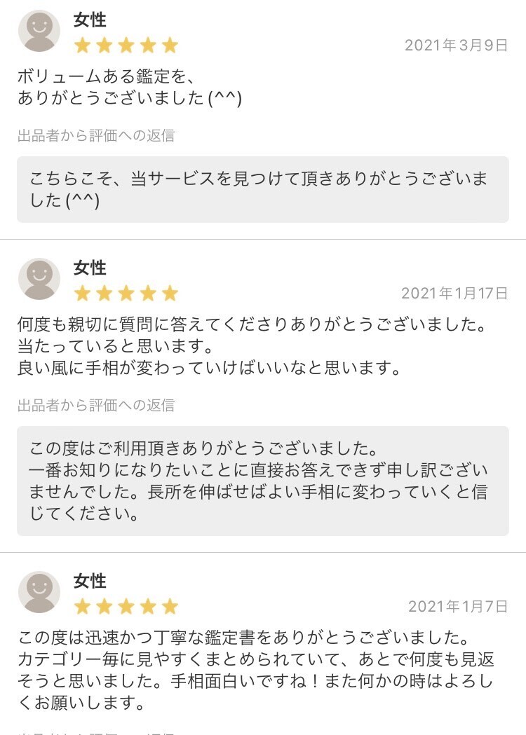 お仕事についてご相談をいただきましたが、あなたの相からは、チームプレーよりも個人プレーの方が向いていると判断できました。